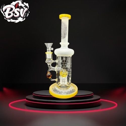 11in Honeycomg Water Pipe W/Matrix Perc & Sandblasted Design