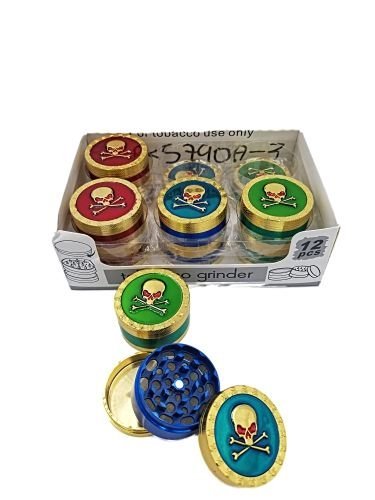 3 Part 50mm Gold Grinder With Etched Skull & Bone