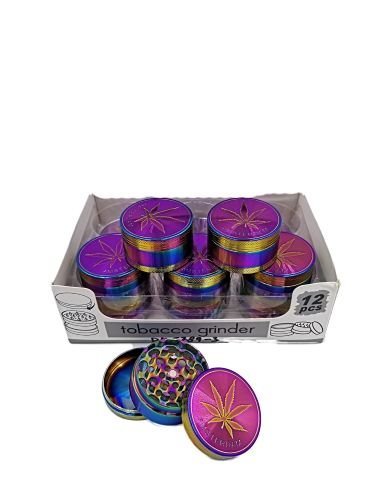 3 Part 50mm Rainbow Polished With Engraved Leaf Design Grinder