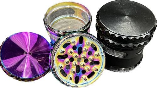 65mm Grinder 4 Piece Hour Glass Rigged Design W/ Window Rainbow