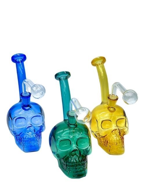 8in Skull Water Pipe With Bent Neck Multi Color