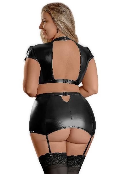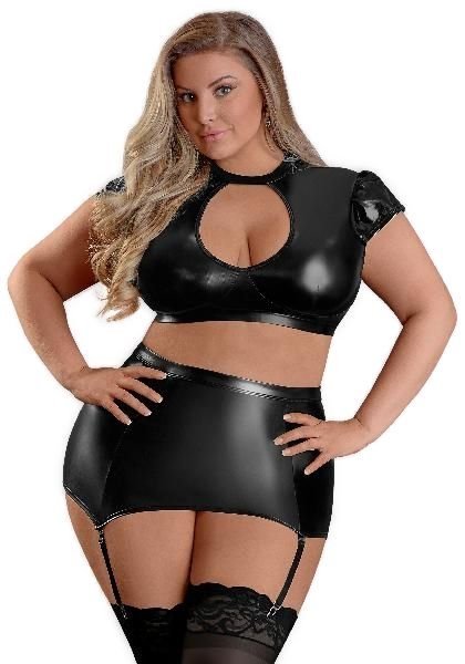 Exposed Lingerie Crop Top & Skirt Black Queen Size