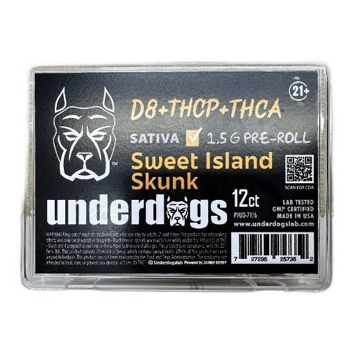 Underdogs 12ct THC-A Blend 1.5 Pre Rolls Sweet Island Skunk