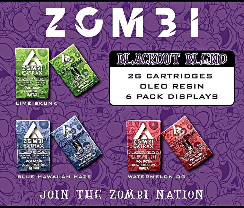 Be the first to review “Zombi Extrax 2g Cartridge Black Out Blend Lime Skunk”